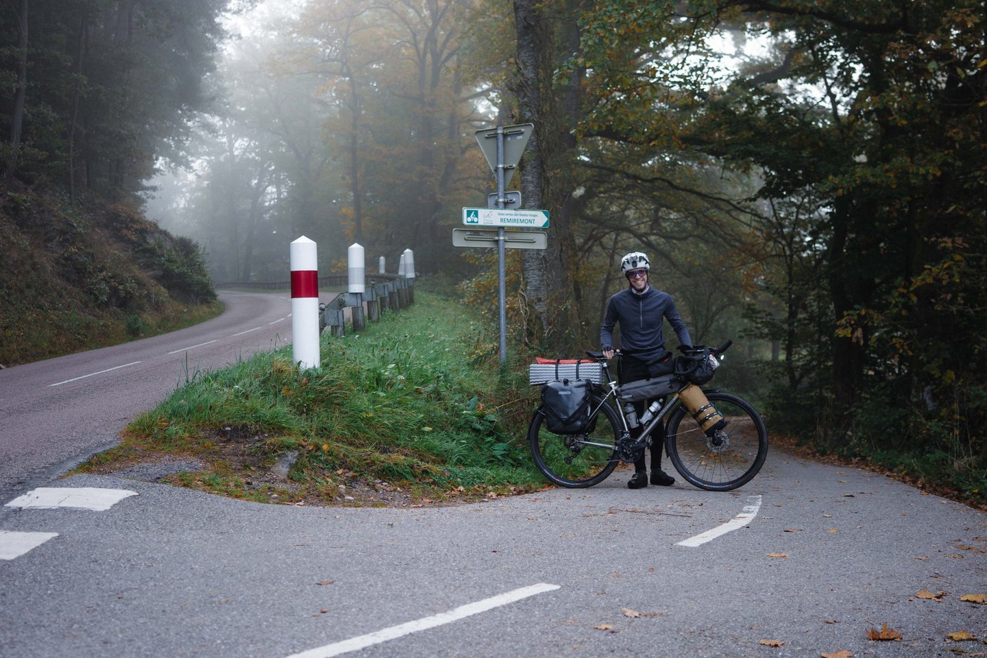 I set off around 8 am on Wednesday. It was pretty cold and foggy, and I was just hoping I hadn’t forgotten anything. As I climbed, I came out above the fog and saw this beautiful sea of clouds over the Val-d’Ajol. The day started off pretty intense, with a lot of elevation gain all the way up to the 1000 Etangs area in the southern Vosges.