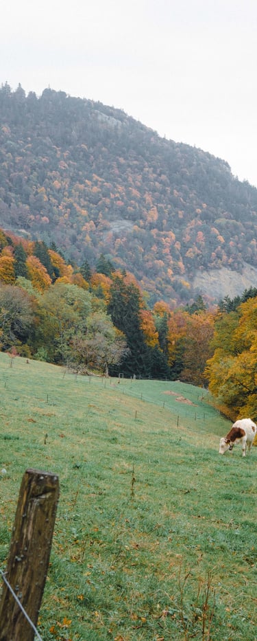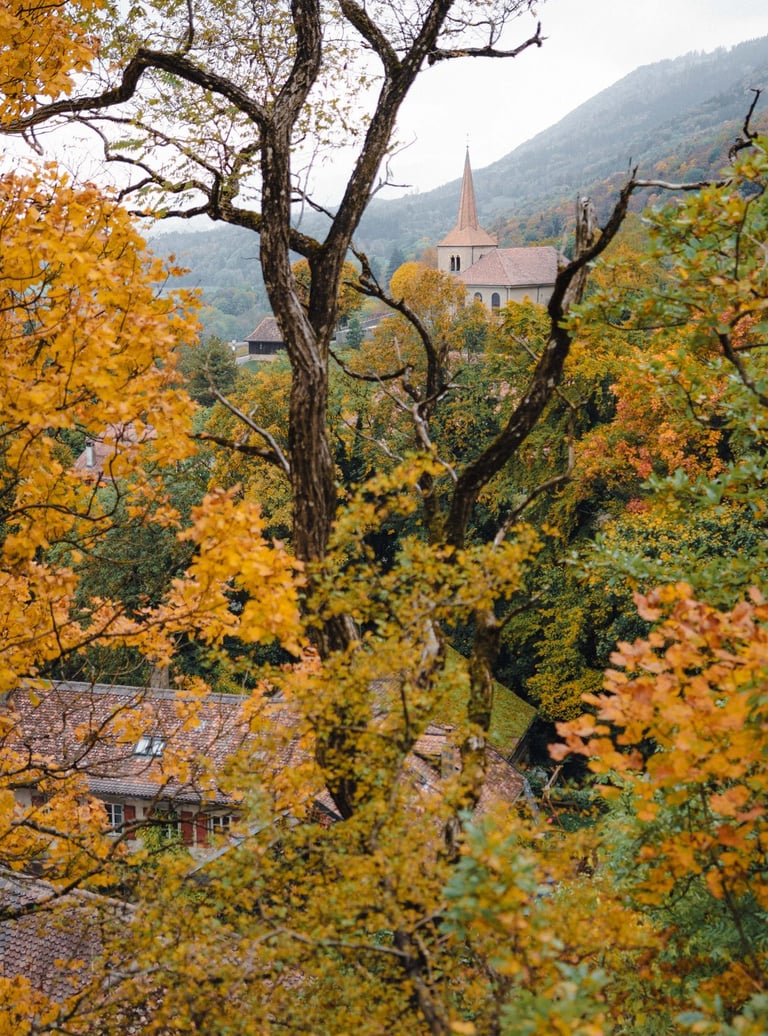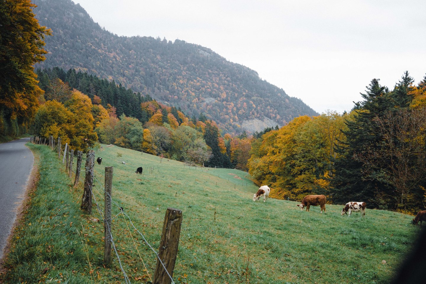 I’m in Switzerland! One last climb to go before a big descent that drops down to the plateau north of Lake Geneva. The small road is stunning and pretty much car-free. Then the long downhill starts, I can see Lake Neuchâtel in the distance and I roll into the little village of Baulmes, which looks incredible with the autumn colors.