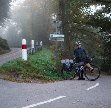 I ride straight through Pontarlier and reach the last climbs of the day heading toward the Swiss border. For a few kilometers, the road is super busy, not the most fun but soon after the Château de Joux, I get onto a quiet backroad that’s way more enjoyable and leads me to a small border crossing I’d never used before.