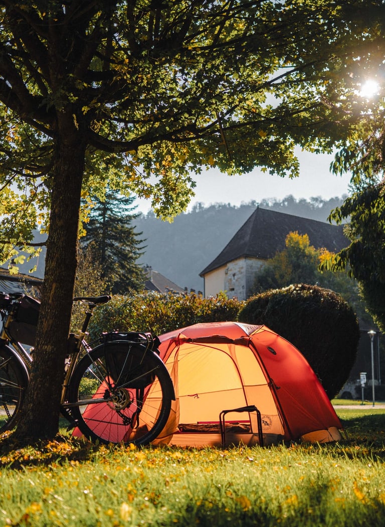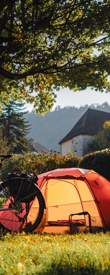 Around 3:30 p.m., I decided to stop at the first campsite I’d marked in Clerval. It felt a bit early, but my plan B would’ve had me arriving right at sunset, and I still needed to dial in my camping setup properly. The campsite was almost empty this time of year. I grabbed a small spot with a view of the castle — pretty cool vibe!