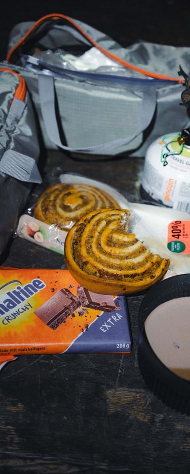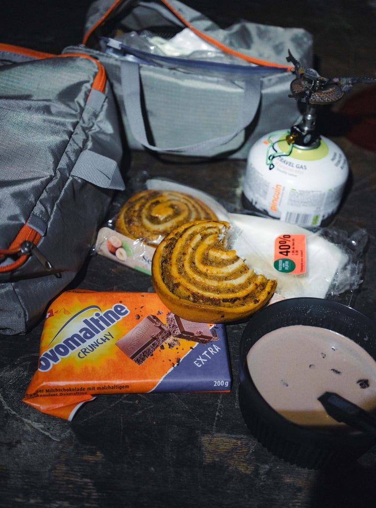 This third and final day should take me all the way to the last campsite in the Alps. It’s the longest day in terms of distance, but with the least elevation gain, so it should be pretty manageable. I start early, pack up while it’s still dark, have breakfast as usual, my classic hot chocolate made with Régilait and Banania, and I roll out with the first light.