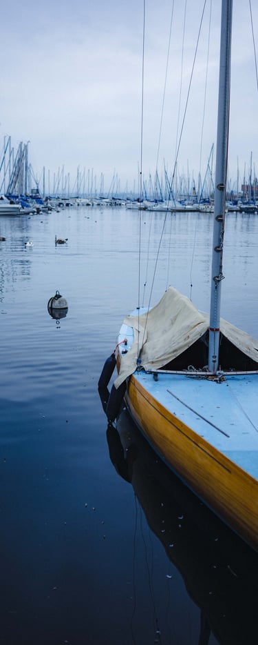 The weather’s cloudy as I reach Lausanne. Traffic flows smoothly, and I’m basically just descending into the city. It’s my first time riding a bike here, and it really makes me realize how insanely steep this city is, thankfully I’m going in the good direction! I finally reach the shore of Lake Geneva, at the port. You can barely make out the French side across the lake because of the haze.