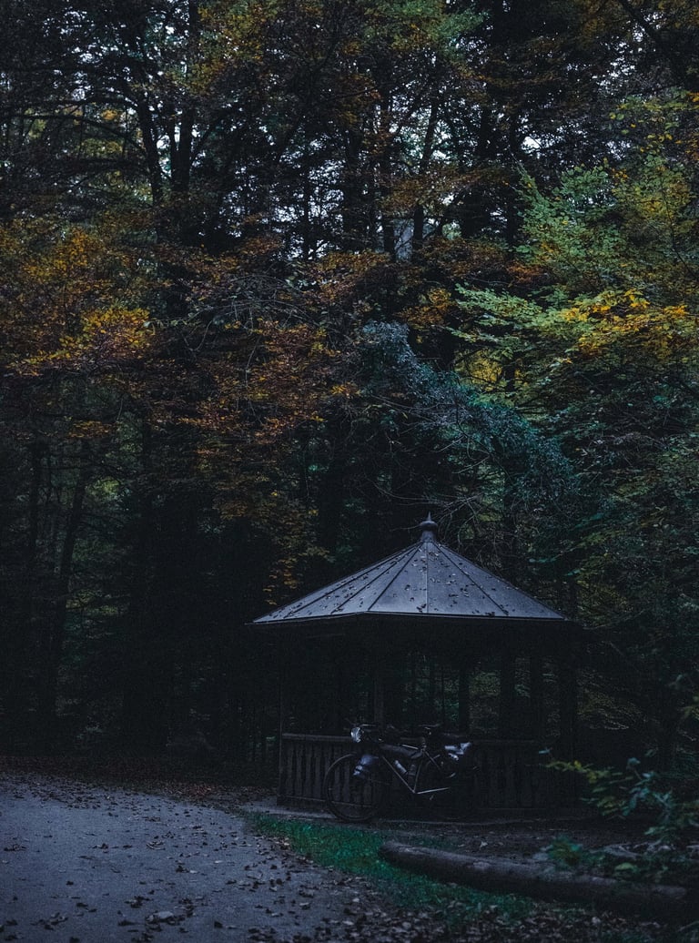 I stop in Chavornay to grab some food at the Coop. I was so hungry I didn’t even think about how expensive everything is here in the expensive CHF… I keep riding until sunset to find a bivouac spot. I get to the Echallens forest just in time, but the access path is closed because there’s apparently a long-distance shooting range nearby. So I have to take a detour and end up arriving in the forest after dark, a bit scary, but I find a perfect little gazebo to eat in and pitch my tent next to it.